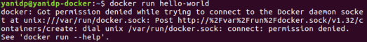 Setelah melakukan itu, Anda harus bisa menjalankan perintah tanpa masalah apapun. Jalankan docker menjalankan hello-world sebagai user biasa untuk memeriksa apakah berhasil.